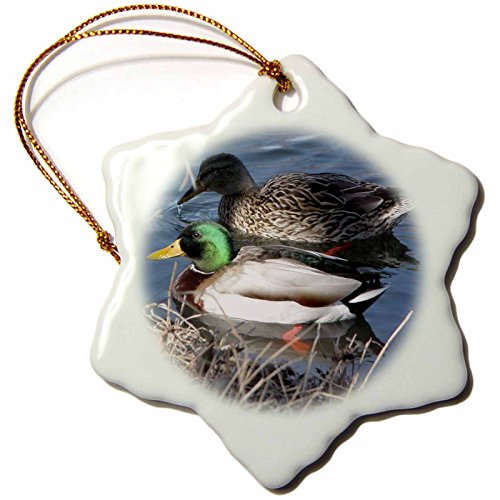 3dRose orn_11549_1 Mallard Duck Couple Porcelain Snowflake Ornament, 3-Inch