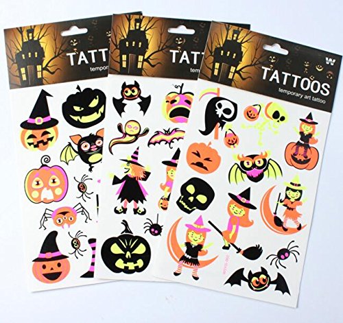 Set of 3 Halloween Pumpkin Tattoos Temporary Tattoo for Kids Children, Party Accessory 38 Pieces