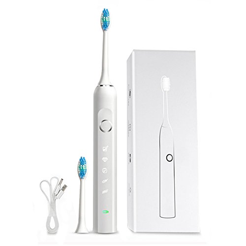 Intelligent Waterproof Sonic Electric Rechargeable Toothbrush, Five Clean Modes, 37000-Times/Minute High Frequency Vibrations, Charge 6 Hours Can Last Up to Use 100 Days (White)