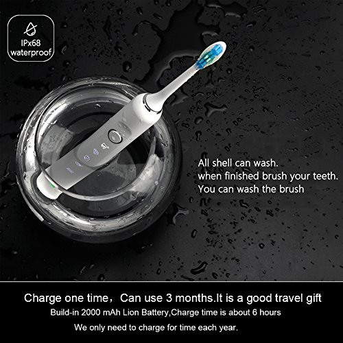 1. Higher Capacity Rechargeable Toothbrush and Save space: One full charge with 6 hours can last up to 100 days , also without charging base to occupy storage space, ideal gift for travel.