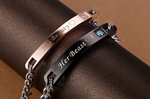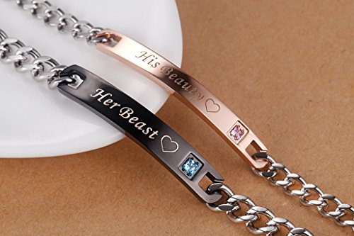 Women: 7"(18cm); Rose Gold Color; Writes "His Beauty" / Men:8.6"(22cm); Black color; Writes "Her Beast"