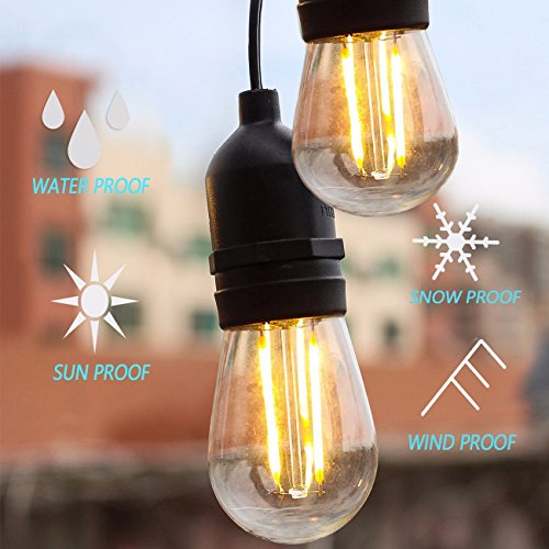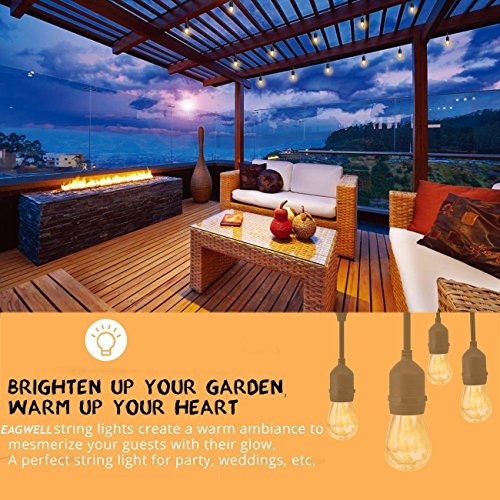 - Strongest Outdoor String Lights on the Market : Eagwell Outdoor lights adopts the latest closed-end and fully sealed technique .so that they can withstand extreme temperatures, rainy, windy, or damp climates. The light cord is rubbery, flexible, and thicker than a traditional cord so that you can confidently leave these ultra durable commercial string lights on display during all seasons.