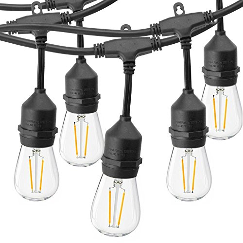 49Ft LED Outdoor String Lights, EAGWELL Commercial String Lights with 15 Dimmable LED Bulbs, Weatherproof Connectable Hanging Strand for Bistro Porch Patio Garden Deck Cafe UL Listed – Black