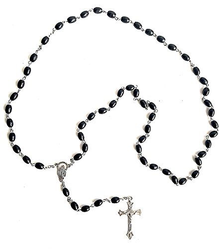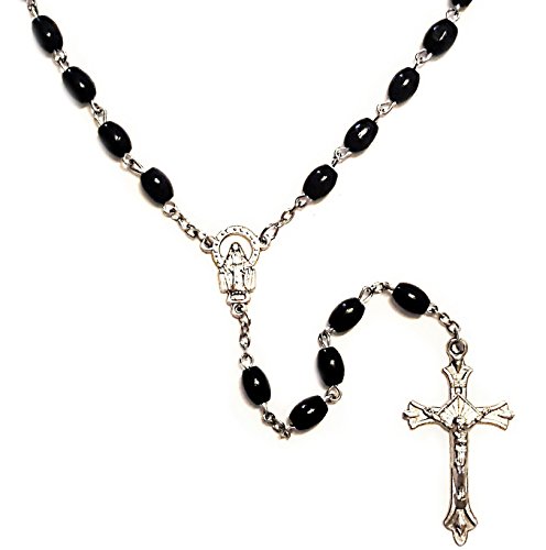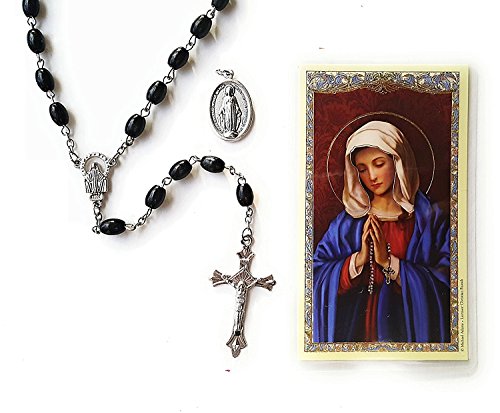 Black Wood Oval Christian Rosary Gift set (Miraculous medal and holy card with prayer)