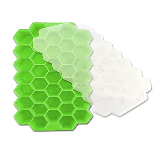 Silicone Ice Cube Tray,ChYu@ Ice Cube Moulds,Silicone Baby Food Freezer,37 pcs Ice Cube Maker with cover (Green)