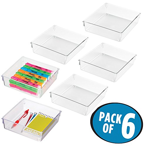 mDesign Office Drawer Organizer for Calculators, Notepads, Tape - Pack of 6, 6" x 6" x 2", Clear