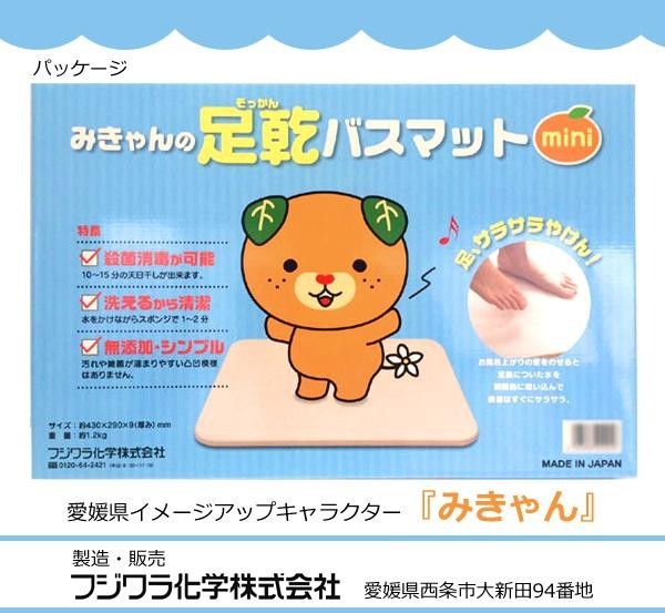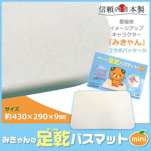 | 着色顔料を加えない素材のままの色合いで、汚れが溜まる元となる彫り模様なども省いたシンプル設計。美しいフォルムでプレミアムな珪藻土バスマットです。愛媛県の人気キャラクター『みきゃん』とのコラボレーションパッケージ☆お子様のいるご家庭や贈り物にもピッタリです♪ |