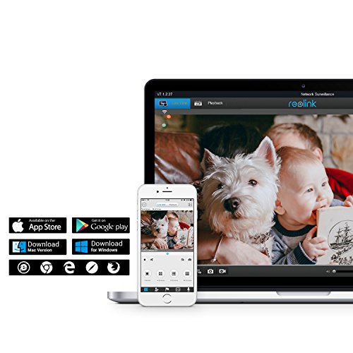 FREE APPS & REMOTE VIEW: Free and intuitive apps for mobile phone (iPhone &Android), video surveillance software Client for Windows PC & Mac, and no monthly subscription fee. Live view, remote view, motion alert, video recording, recorded video playback anywhere any time.