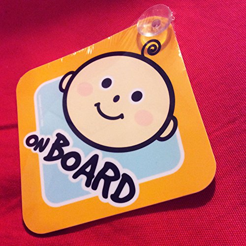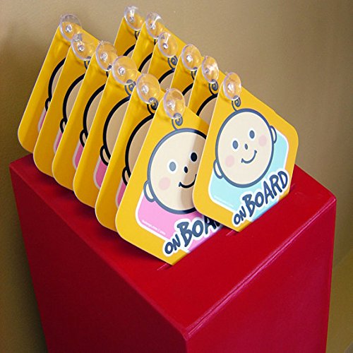 BABY ON BOARD - 2 PACK - LARGE 6" X 6" YELLOW CAR SIGNS WITH 2 ATTACHED SUCTION CUPS.