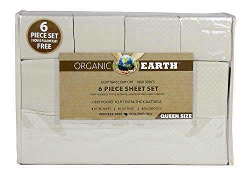 Organic Earth Egyptian Comfort 1800 Series Eco-Friendly 6 Piece Sheet Set, Queen, Beige