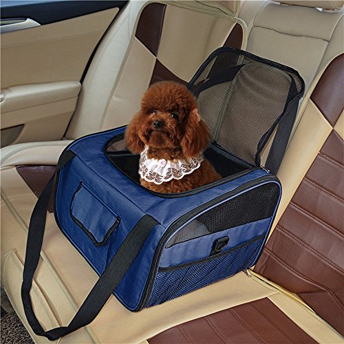 600 Denier Nylon shell extra softly padded. Interior tether is adjustable to keep your pet secure. Loops at back allows safety belt to go through and fix. Adjustable strap attaches to headrest or play as shoulder strap while walking. Handles are available for carrying. Zipper top/side for easy entry . Mesh top entry and side windows ensure air ventilation. ,br>Front and side pockets hold treat,toy,etc. 0