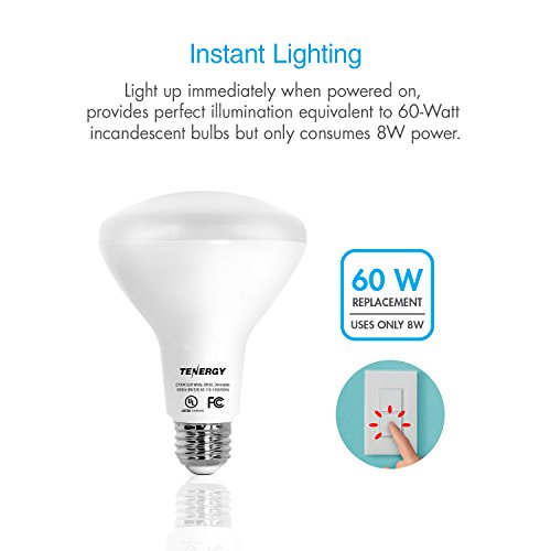 Studio : Tenergy Publisher : Tenergy Product Description A Perfect Ceiling Flood Light Bulb Designed to fit in your ceiling recessed cans and track light fixtures with 120 degree beam angle that projects even lighting to your room. Dimmable Down To 10% Compatible with LED dimmer switches*, offering a smooth dimming control with the lowest brightness at 10%. *Make sure to check with your dimmer, not all dimmers are designed to work with LED light bulbs. Energy Efficient, Long Lasting Estimated energy cost is $0.96 per bulb per year*, which consumes 85% less energy and lasts up to 25000 hours. *Based on 3 hrs/day, 11¢/kWh. Instant Lighting 60-Watt Direct Replacement Full brightness immediately when powered on and perfectly illuminates equivalent to 60-Watt incandescent bulbs. Safe for Your Family and the Environment Free of toxic chemicals and breakable parts to keep your home safe and to take a big step toward a greener future! Technical Specifications: Lighting Technology: LED Number in Package: 8 bulbs Color Temperature (K): 2700 Light Color: Soft White Bulb Type: Flood and Spot Bulb Shape: Reflector Indoor/Outdoor: Indoor Light Bulb Base Code: E26 Light Bulb Base Type: Medium Light Bulb Shape Code: BR30 Wattage (watts): 8 Light Output (lumens): 650 Watt Equivalence: 60 Color Rendering Index (RA): 80 Average Life (hours): 25000 Dimmable: Yes, 10-100% Dimensions Product Depth (in.): 3.74 Product Height (in.): 5.08 Product Width (in.): 3.74 Package Contents 8 X LED BR30, Soft White Warranty / Certifications Certifications: UL Manufacturer Warranty: 3 Years