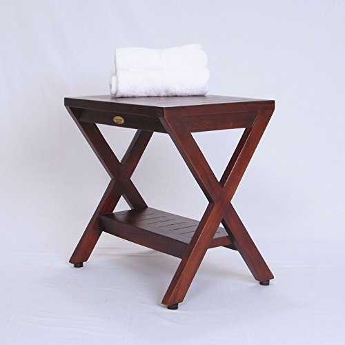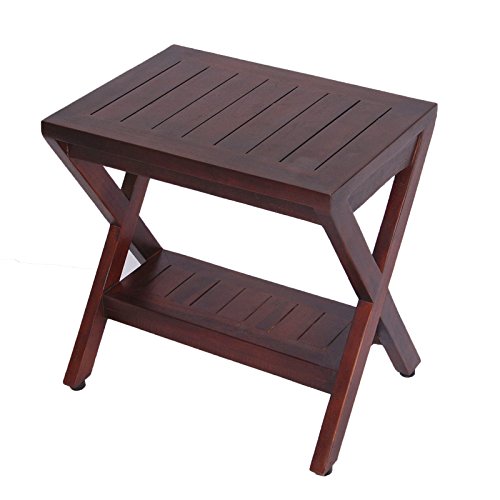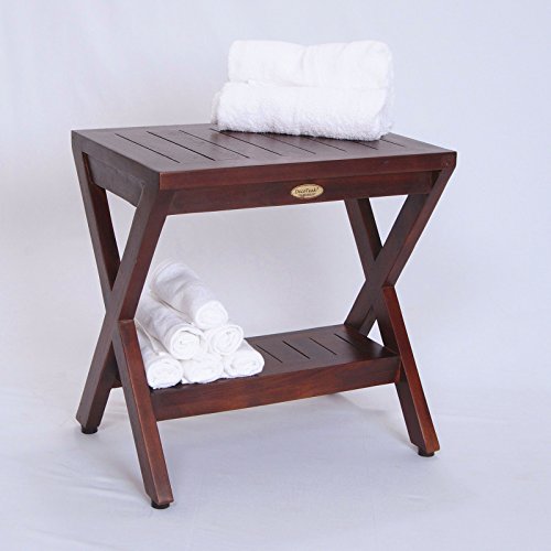 Obliquity Teak Shower Bench with Shelf- FULLY ASSSEMBLED- Shower, Bath