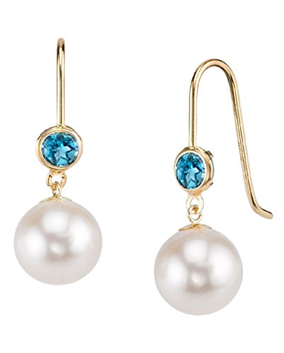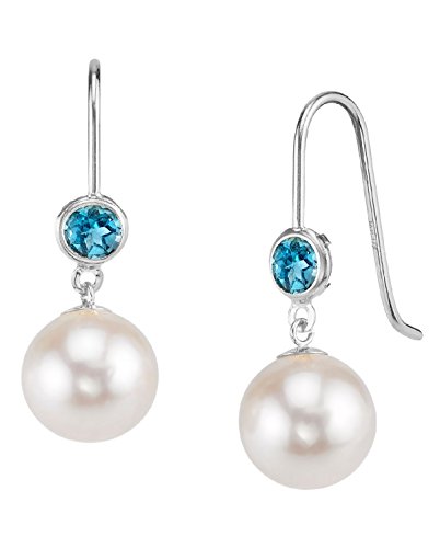 Simplicity and elegance have never made such a perfect combination. A beautiful pair freshwater pearls on elegant 14K white or yellow gold leverback backings. Pearls in this beautiful freshwater color are gorgeous and will make a perfect addition to your pearl jewelry collection. The pearl earrings have a "Superior" grade luster, our highest grade available, and are AAAA in quality. These earrings are adorned with a beautiful set of Blue Topaz gemstones. All pearl jewelry comes packaged in an elegant jewelry gift box to make for a beautiful presentation. A certificate of authenticity is included with every purchase.