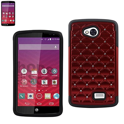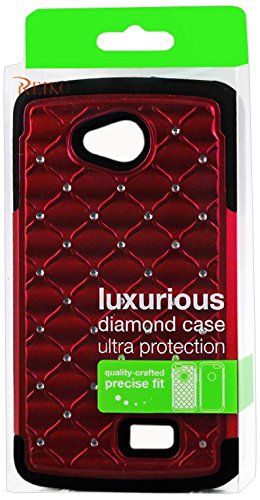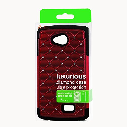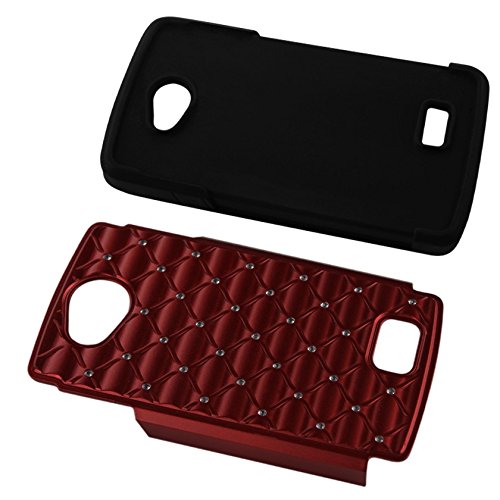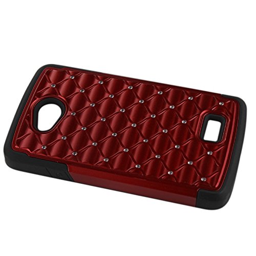 Reiko Premium Hybrid PC Silicone Double Protection Diamond Bling Case Cover for LG Tribute Ls660/F60 D390N - Retail Packaging - Black/Red