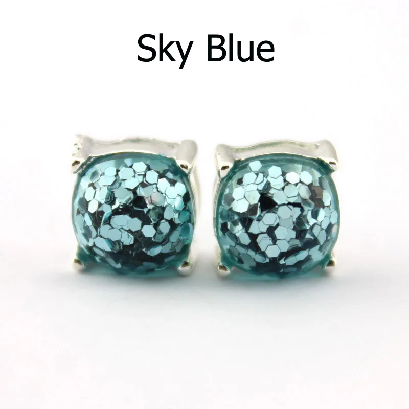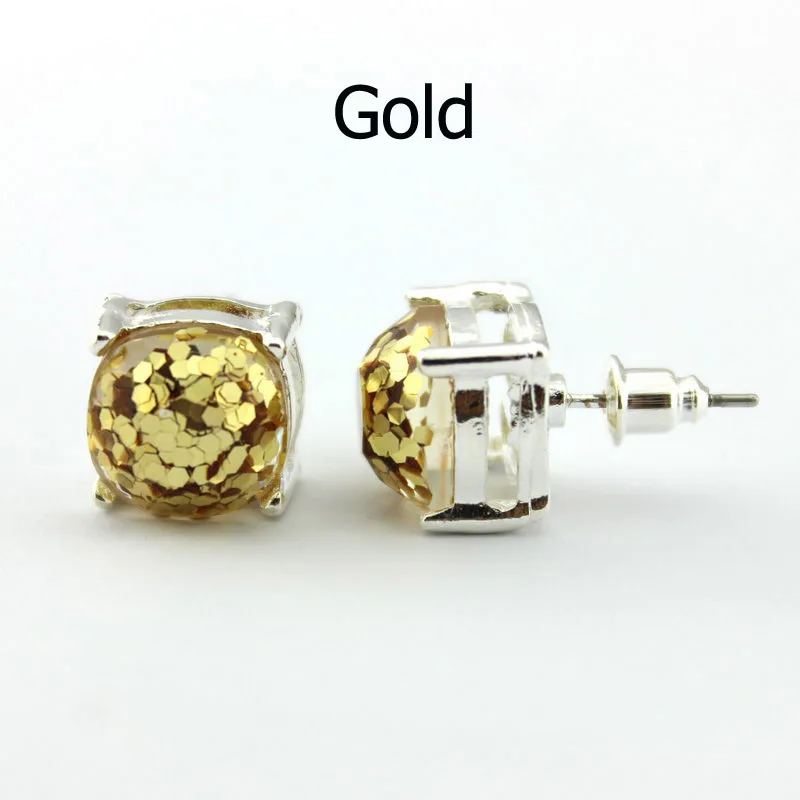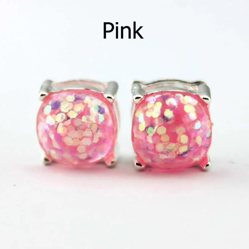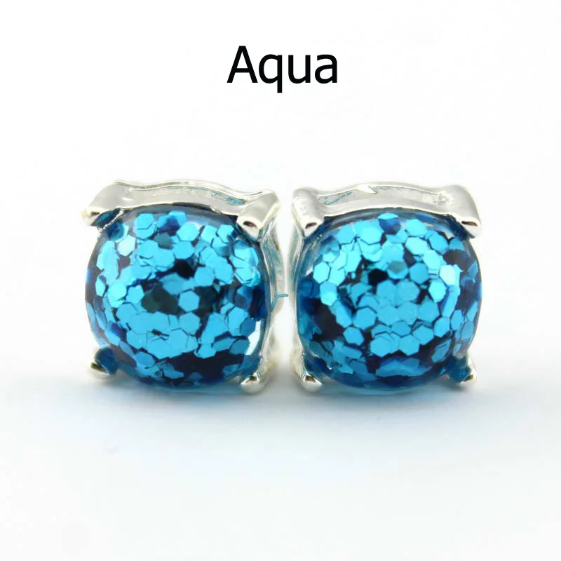 Item Name:14 Colors Silver Plated Kate Glitter Studs Earrings Square Spade Ear B