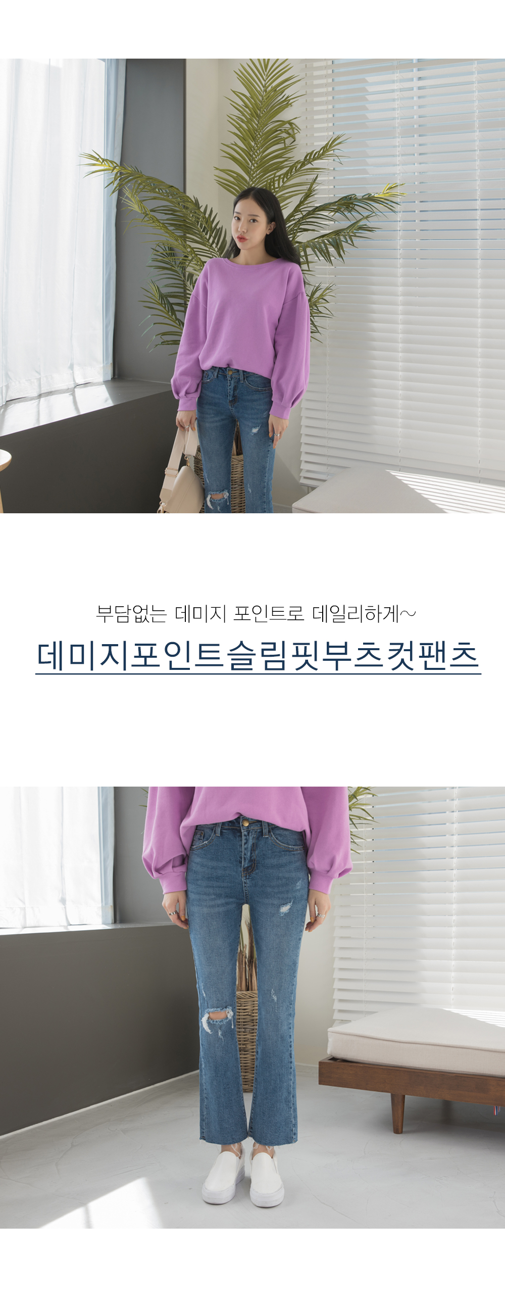 슬림한핏의 부츠컷디자인으로 예쁜 레그라인을 연출해주는 데님팬츠에요~
