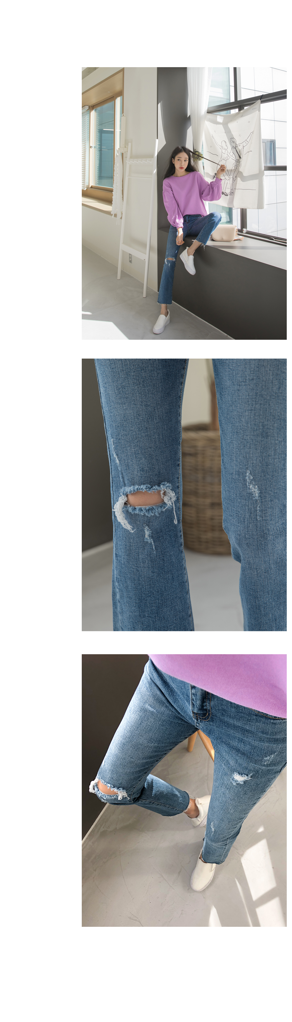 데미지가 포인트로 들어간 데일리 데님팬츠