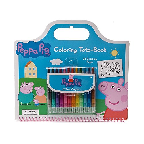 Peppa Pig Coloring Tote-Book with handle. Full size Peppa Pig sticker sheet plus 1 separately licensed bonus coloring sticker. 24 Peppa coloring pages with Peppa's family and friends.12 Twist crayons in a detachable resealable Velcro case. Peppa Pig Activity Set is perfect for fun at home, on the go, anywhere! Sure to be a hit with any Peppa Pig fan!