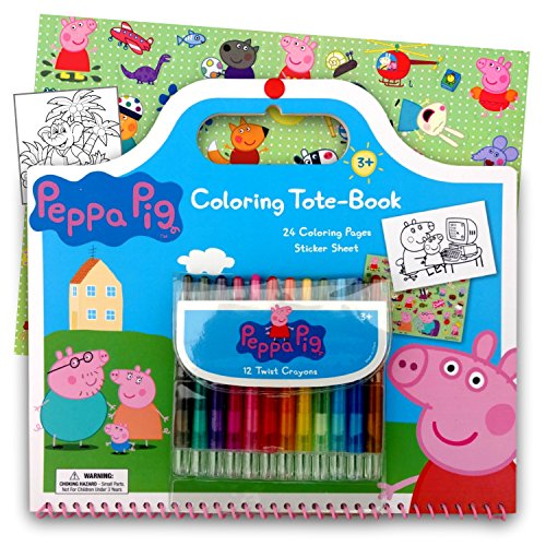 Peppa Pig Coloring Book Set with Peppa Pig tote coloring book, Peppa Stickers, Peppa Pig toddler crayons great for travel and creativity.