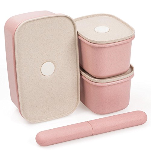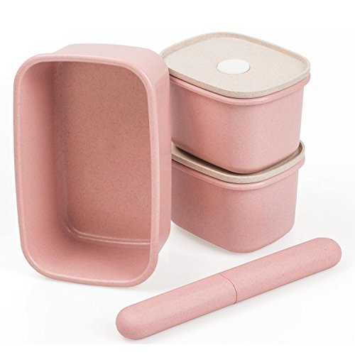 6 Pink pieces include: 1PC 950ml container, 2PCS 440ml containers and 3 lids(3 Packs, each pack shrinkwrapped individually)+2 packs pink toothbrush cases as gift