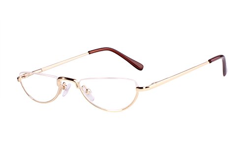 Product Description Brand New and High Quality 'Half Moon' Reading Glasses.Semi-rimless frame readers are perfect for those folks that like to keep their reading glasses on at all times.Simply look down to read your favorite novel and look up and over your reading glasses to see your children or grandchildren playing in the living room. 0