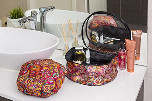 New Dilly's Collections Waterproof Shower Caps - Premium Double Layered - Lightweight - Matching Satin Bag - Protects Hair In The Shower -Perfect - Travel Accessory - Reusable- Retro Shower Cap