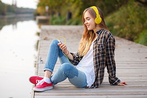 Polaroid PHP8500YL Neon Headphones with Mic, Foldable, Tangle-Proof, Compatible with All Devices, Yellow