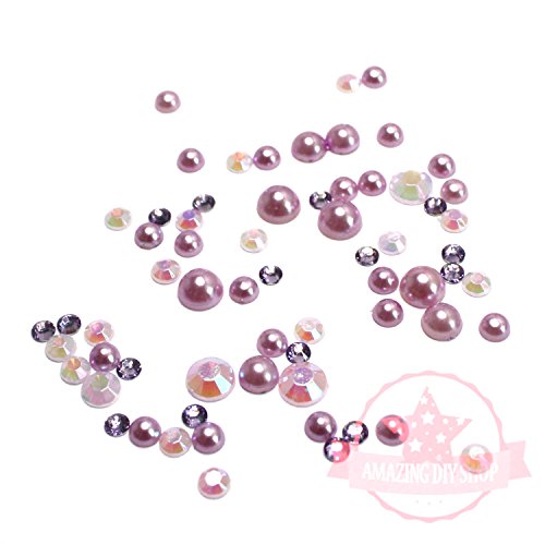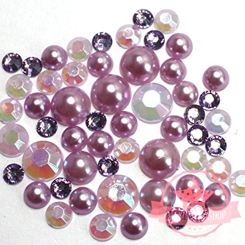 200 pcs Resin 3mm-6mm round Flatback Mix assorted Purple violet Rhinestone pearls *ship with FREE GIFT from GreatDeal68*
