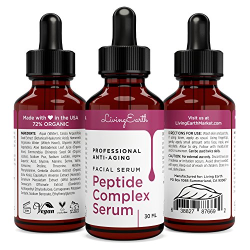 Living Earth is dedicated to creating the most organic and natural skin care products on the market. We truly believe health and beauty go hand in hand, and help contribute to one another. That's why choosing skin care products that are safe and all natural is the most important part in achieving the anti-aging results that you deserve.Why Choose Our Peptide Complex Serum?