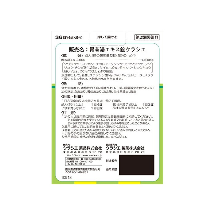 원본상품명: 【第2類??品】胃?湯エキス錠クラシエ 36錠-4987045109188