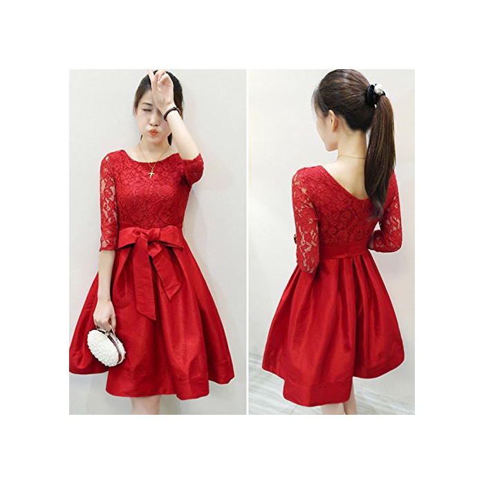 원본상품명: 大人 かわいい 刺 レス 切り替え リボン ワンピス ドレス 結婚式 パティ 赤 (XL, レッド)