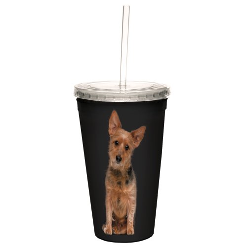 Tree-Free Greetings CC34999 I Heart Australian Terriers Artful Traveler Double-Walled Cool Cup with Reusable Straw, 16-Ounce, Tan and Black
