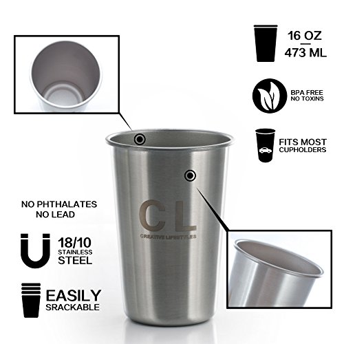 -. Title : Stainless Steel Cup - Made from 18/8 Kitchen Grade Stainless Steel - Multi-purpose Perfect Iced Water & Tea Tumbler/Wine & Beer Mug/Camping by Creative Lifestyles (Pack 5 or 2 , Capacity 16-Ounce)