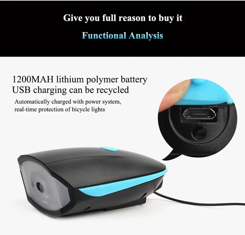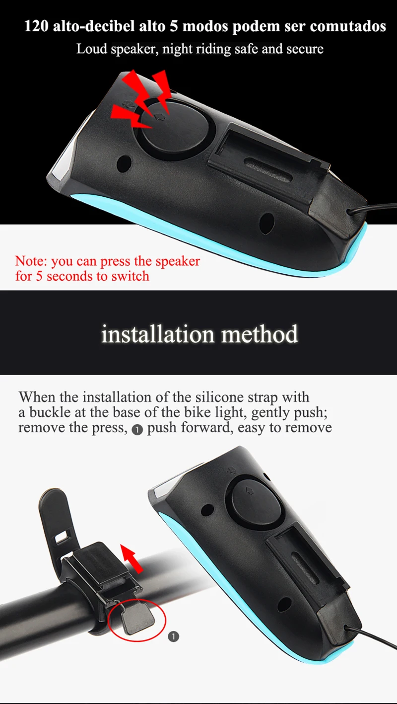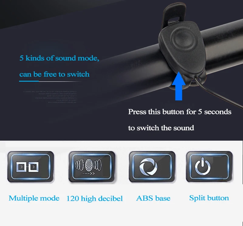 Feature:Electric Bell and Light in One, portable, waterproof