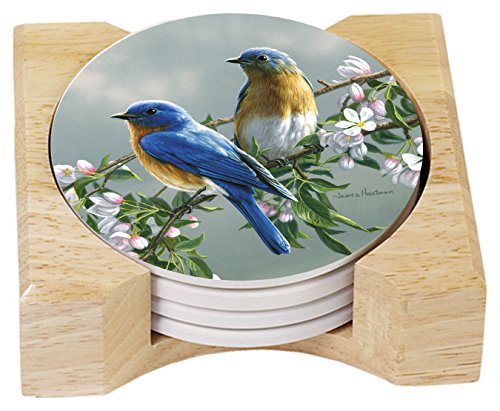 CounterArt Songbirds Absorbent Coasters in Wooden Holder, Bluebirds, Set of 4