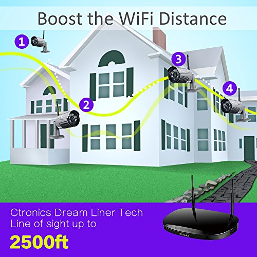 BOOST WIRELESS RANGE: The Ctronics dream liner technology uses cameras in middle as repeaters, boost WiFi distance 2 to 3 times,which can ensure 1000" wireless range(without wall)