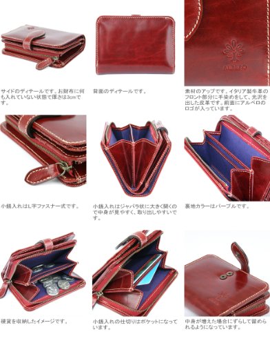 -. Feature : 外寸:縦9.5cm×横12.5cm×まち3cm ・重さ:150g / お札入れ:2ヶ所 ・小銭入れ:1ヶ所(L字ファスナー式) ・カード入れ:8ヶ所 ・ポケット:5ヶ所 / 表素材:イタリア製牛革  ◇手ざわり: 柔 □□□■□ 硬 (※表記は目安です) 裏地:有り(コットン) カラー:パープル / MADE IN JAPAN(日本製)