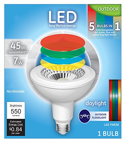 GE Lighting PAR38 LED 7-watt (45-watt Replacement), 550-Lumen PAR38 Light Bulb, Multi-Color Lenses, Medium Base, Daylight, 1-Pack