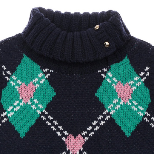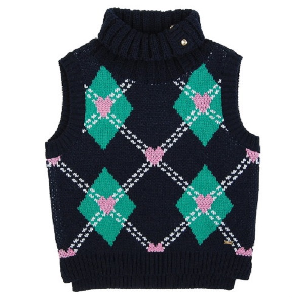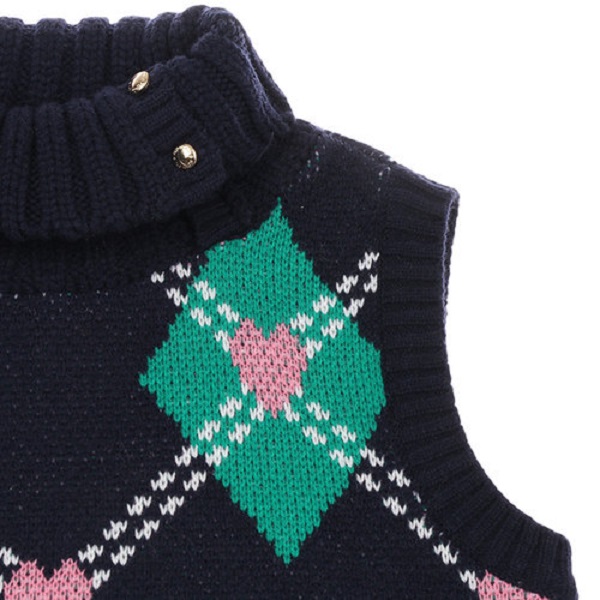 -앞쪽에 아가일과 하트 패턴이 있는 니트 조끼입니다.