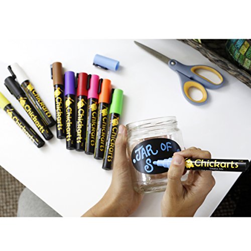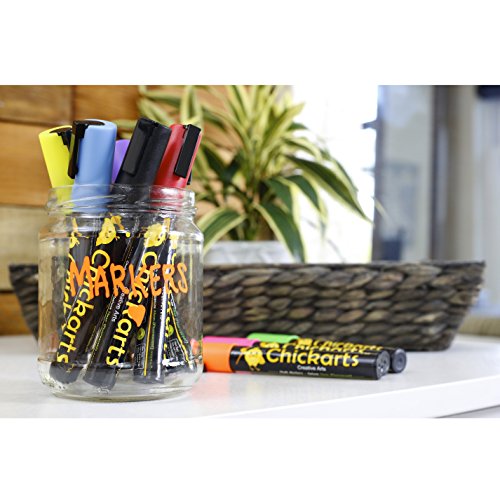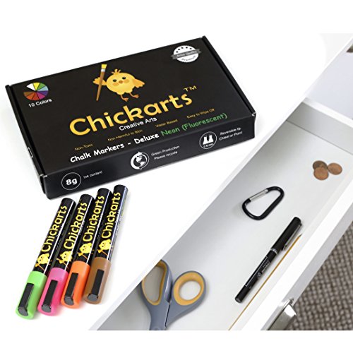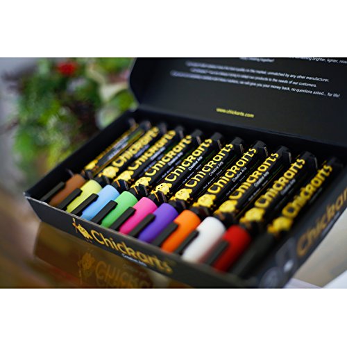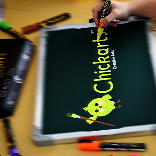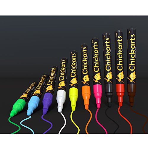 - Feature : WARNING - NOT SUITABLE FOR MOST CHALKBOARDS: Guaranteed to write and wipe off (TESTED) from any non-porous and non-permeable surface or money back! GREAT ON: Glass, plastic, plastic bags and food containers, mirrors, windows, whiteboards, bistro boards, LED blackboards, porcelain, ceramics, mugs, varnished wood and plant pots, metal, chalkboard stickers, chalkboard contact paper, car windows, science fair project board, science project display board , science project poster board and many more! / FLUORESCENT Blacklight pens - GLOW IN THE DARK UNDER UV-Light: Beautiful uv light pen. These dry erase markers write smoothly and easily like glass markers. / PERFECT FOR ALL BUSINESS TYPES: Do you want fantastic displays in your bistro? Do you want your projects at the office to stand out?... BUY our Chalkboard Markers and Amaze and Catch the Eyes of Your Customers! / ARTIST QUALITY CHALK PEN with UNIQUE REVERSIBLE bullet and chisel tip (PREMIUM quality fiber tips & ink from Japan... NOT China): This set of 10 chalk paint markers has the best quality you can get in the market. Teachers love using our chalk paint pens in their school classroom because of the bold bright vibrant neon colors. No more messy chalkboard chalk ! / PERFECT GIFT for children and kids and also great as SECRET SANTA PRESENT, for parties, weddings or holiday decorations - SAFE COLORS - Water based, non toxic, non harmful to the skin and completely DUST FREE chalk pencil - Get one for yourself and one for a friend! Order 2 or more and save at least 10% (see code below under "Special Offers and Product Promotions").