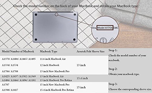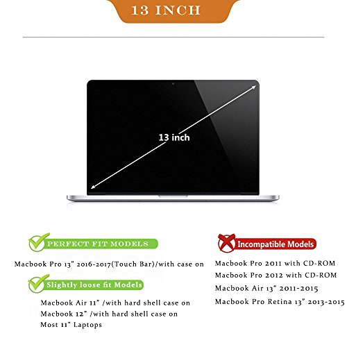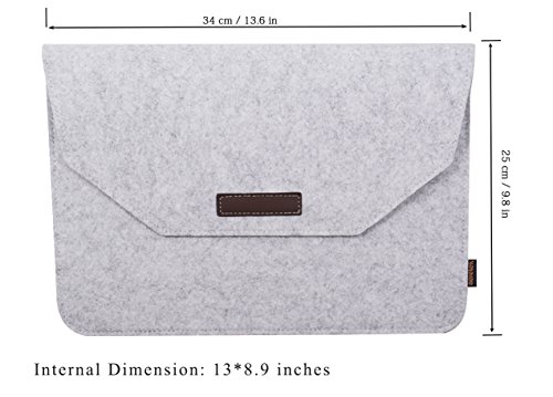 External dimension: 13.6x9.8 inches, internal dimension: 13x8.9 inches, perfect for 2016-2017 release macbook pro 13" with/non touch bar, macbook air 11", macbook 12", and most 11" inch laptops, and them with case on.