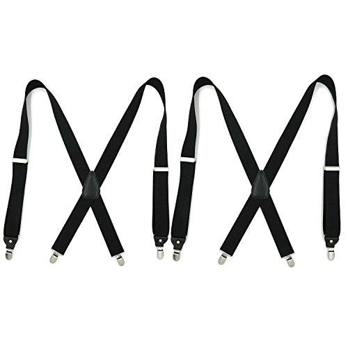 Mens X-back Suspenders Adjustable Metal Clips Slip Braces Black