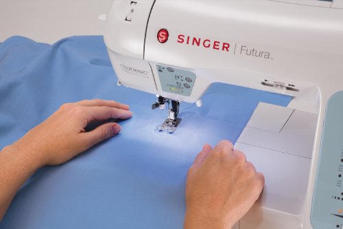 The SINGER Futura XL-400 is the next generation in the Futura line of sewing and embroidery machines. The SwiftSmart threading system with automatic needle threader makes set-up virtually effortless. The Drop & Sew bobbin system allows you to load and change the bobbin in no time without the need to pick up the bobbin thread. Six StayBright LED lights keep your extra-large sewing space well lit when working on big quilting and sewing projects. This sewing and embroidery machine has 30 popular built-in sewing stitches with two fully automatic one-step buttonholes and also boasts 125 built-in embroidery designs with five fonts and outline lettering. With a larger embroidery hoop option (10-by-6-inches) and multihooping capability, you can create designs up to 12 by 20 inches. This fantastic feature and will allow you to embroider large format projects such as table cloths, bedspreads, dresses and more. Get the same quality embroidery results as high-end embroidery machines but at a fraction of the cost by using your own PC. Simply connect your PC to the Futura XL-400 sewing and embroidery machine via the included USB cable, use the included software with built-in tutorials, and send the design to the machine. Push a button and you're embroidering. Computer requirements: personal computer with 1 GHz Intel or AMD Processor, Windows OS: Windows XP/Vista/7, 1 GB of RAM (or more recommended), CD-ROM Drive, 500 MB (or more recommended) of available hard-disk space for installation, color standard (1024 by 768 pixel, 65,000 colors recommended), VGA adapter connected with color VGA monitor, Microsoft-compatible mouse, USB 1.1/2.0Feature