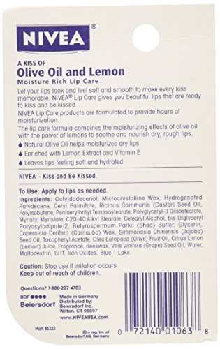 -. Title : Nivea Lip Care, Moisture Rich, Olive Oil & Lemon (3 Pack)