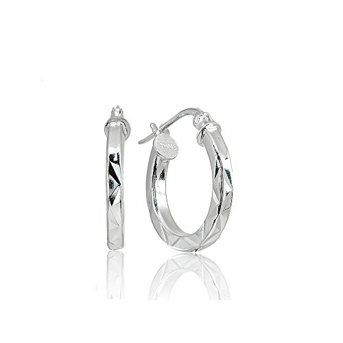Medium square-tube diamond cut hoops are round and 15mm in diameter. They are lightweight for comfort wear.