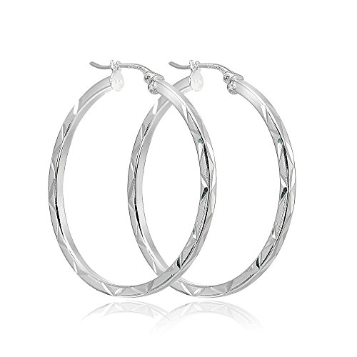 LOVVE Sterling Silver High Polished Diamond Cut Square-Tube Round Click-Top Hoop Earrings, All Sizes