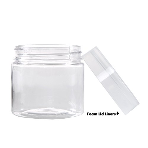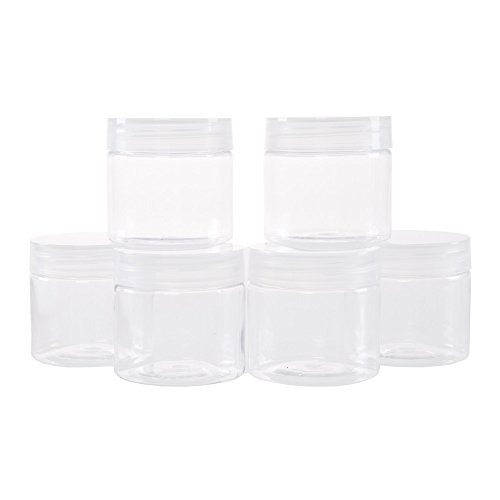Clear 2 Ounce Plastic Jar Containers, 6 Pack of Plastic Storage Jars with Foam Liner By Stalwart- For Travel, Creams, Liquids, Makeup and Organization
