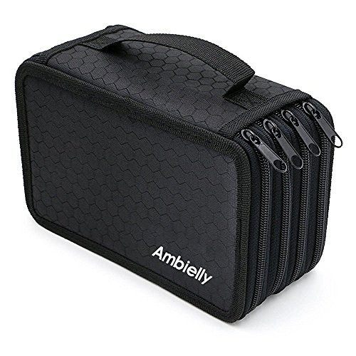 Ambielly Oxford Pencil Bag,72 slots Pencils Holder Colored Pencils Case/Roll Pouch/School Office Art Soft Pencil Bag for Art Drawing(Black Pen Bag)