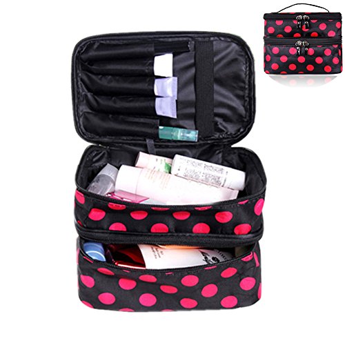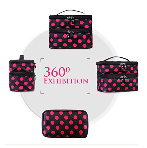Pevor Double Layer Toiletry Bag Large Capacity Makeup Bag for Travel Cosmetics Storage Handbag Rose Pink Dotted Ladies' Cosmetics Collection Tools